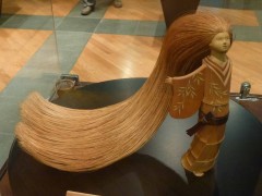 ↑ こちら左側は「かぐや姫」。竹人形で最も特徴としている、長くて艶やかな髪。