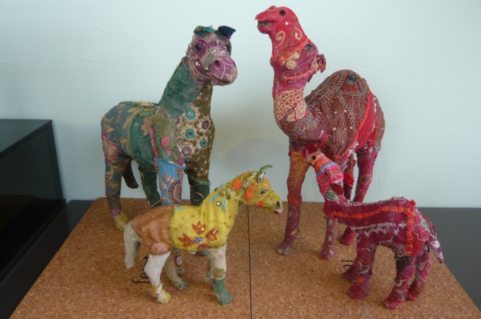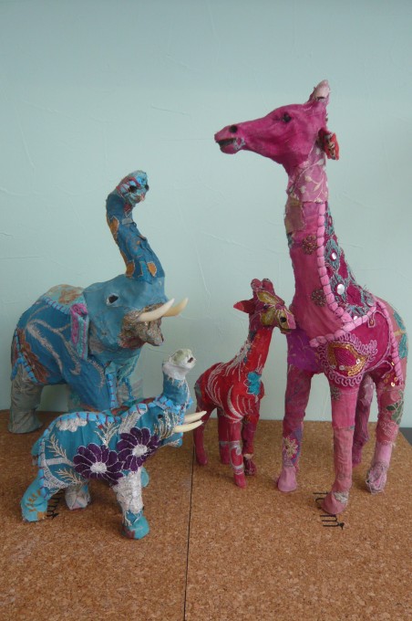 パッチワークのように、いろんな柄を纏った動物たち。