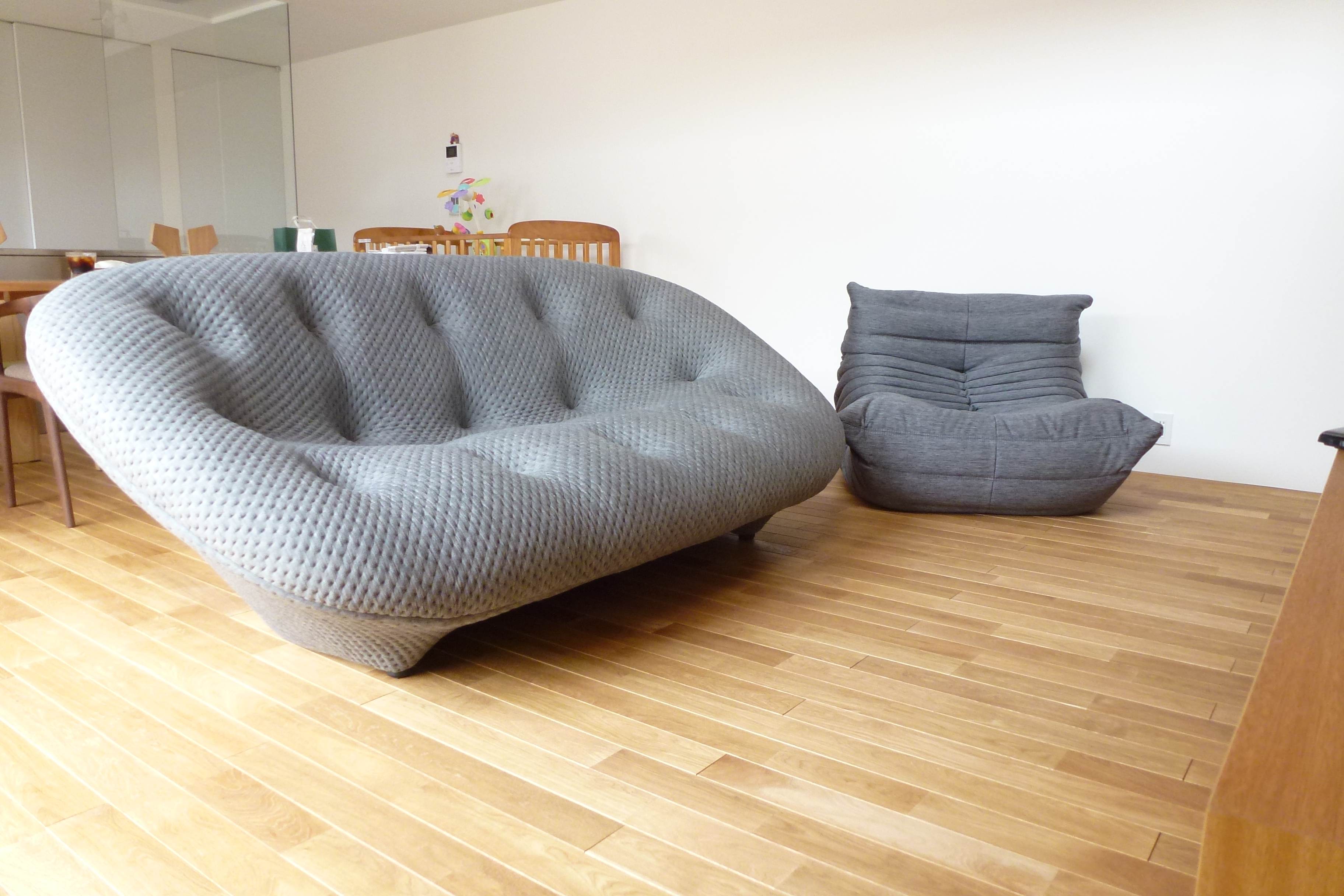 両方共に奥行きのあるソファですが、広いリビングなので全く大きいとは感じませんでした。